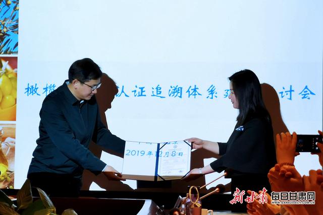 會上,主辦方向隴南市祥宇油橄欖開發(fā)有限責(zé)任公司頒發(fā)了中國首張?zhí)丶壋跽ラ蠙煊驼J(rèn)證證書。