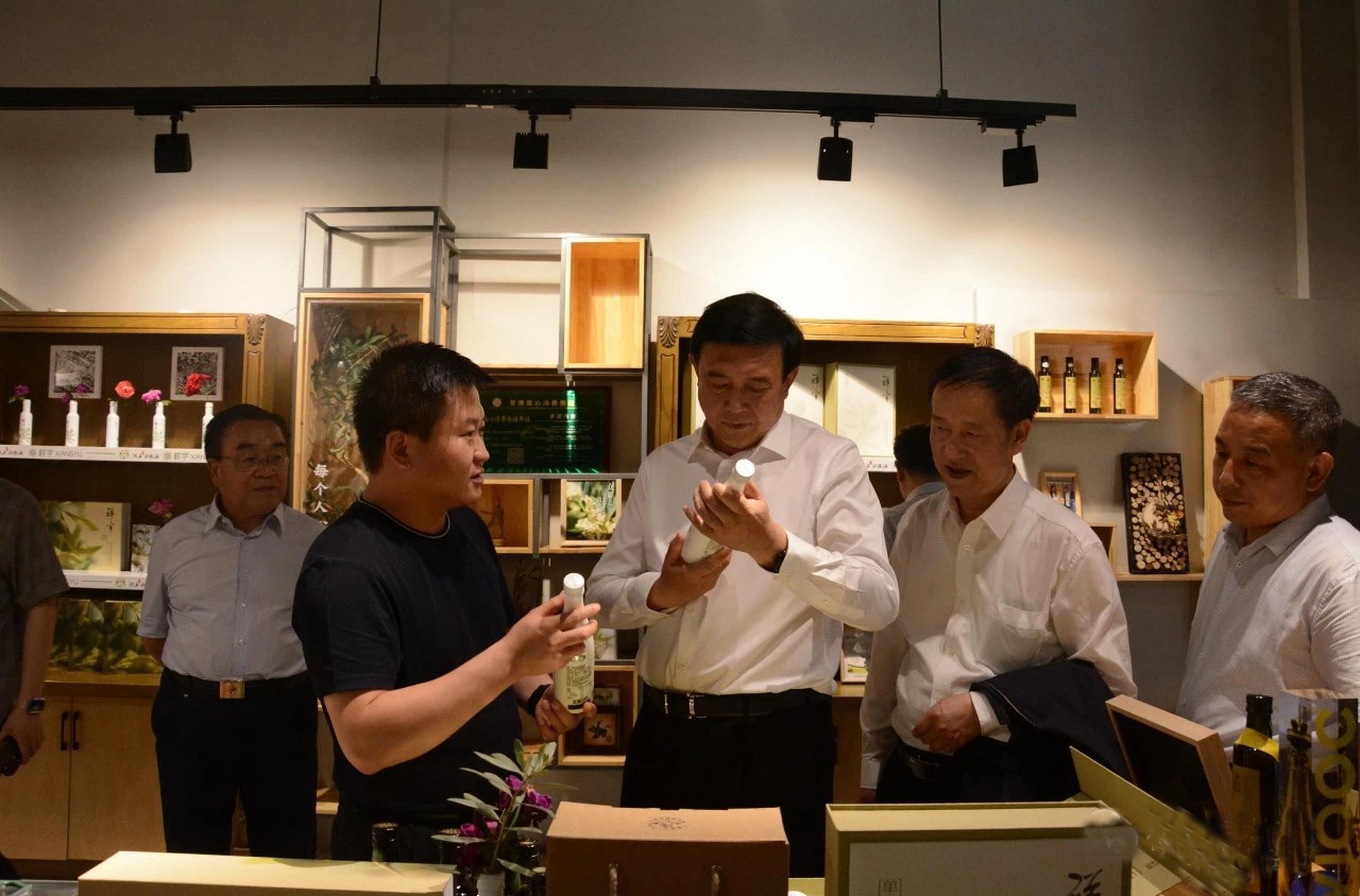在產(chǎn)品展示區(qū),趙主席品鑒了特級初榨橄欖油、橄欖菜、橄欖果、橄欖拌飯醬、橄欖保健品等系列產(chǎn)品,