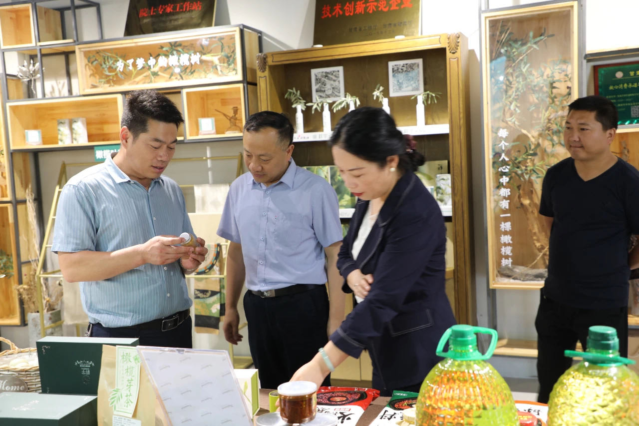 在產(chǎn)品體驗(yàn)區(qū)王總向王處長一行介紹了祥宇特級(jí)初榨橄欖油、橄欖茶、橄欖菜、橄欖保健品等系列產(chǎn)品,